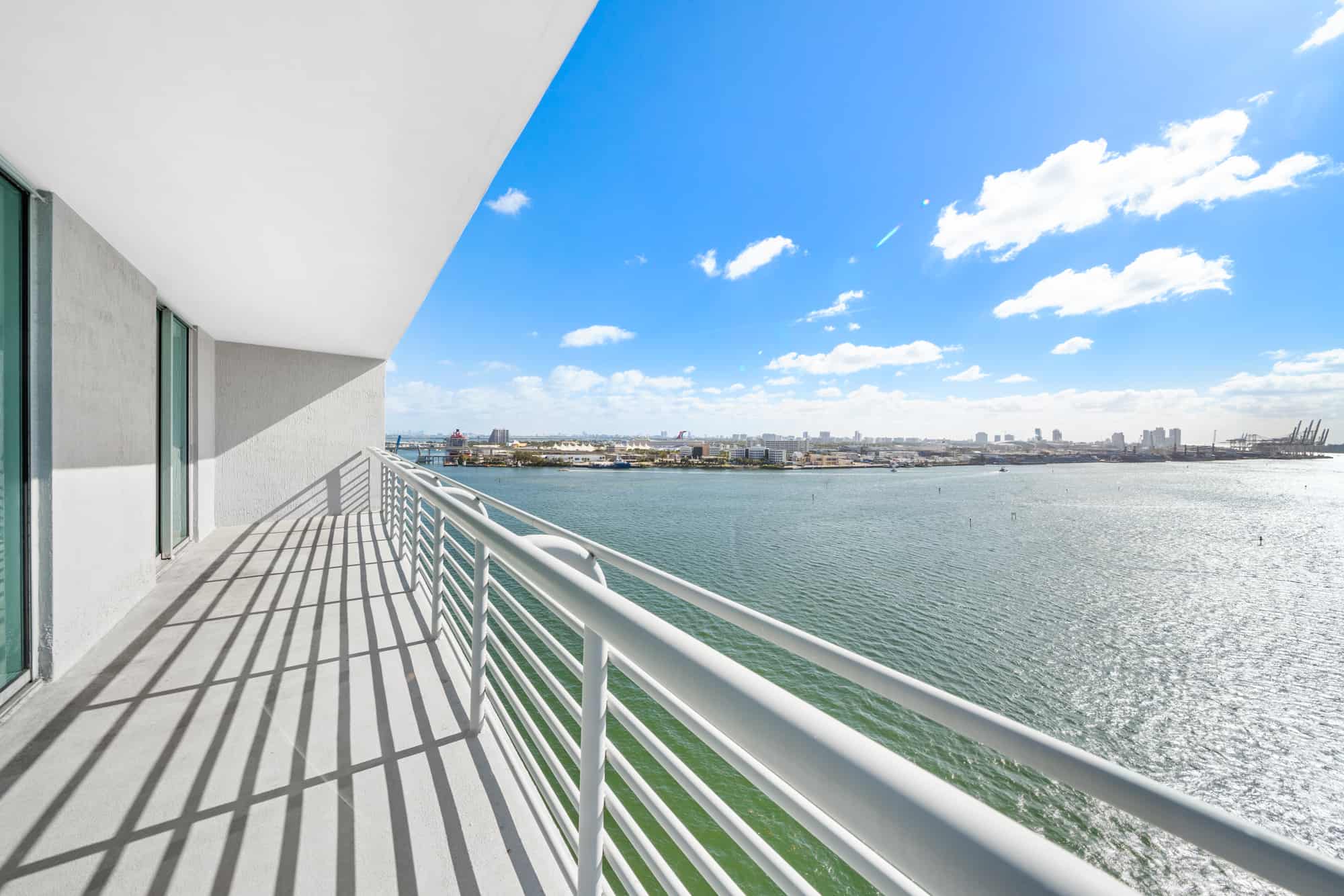 - Residences, party, and amenity decks offer spectacular and dramatic views of Biscayne Bay, Port of Miami, Brickell Avenue, Downtown Miami, South Beach, and Key Biscayne